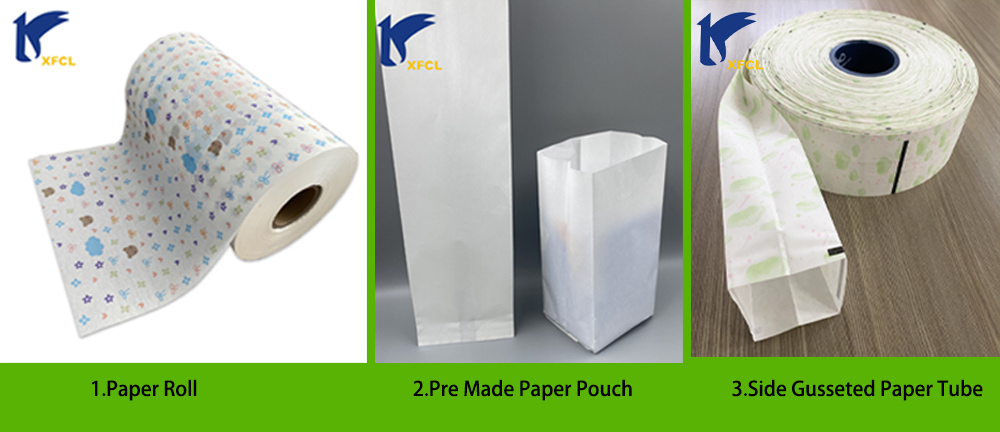 2. Estilo de oferta: Para cumplir con los requisitos de diferentes estilos de máquinas de embalaje de clientes, nuestro paquete de papel biodegradable reciclable se puede ofrecer en rollo de papel, bolsa prefabricada y tubo de papel personalizado.