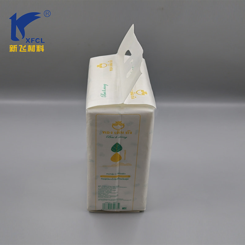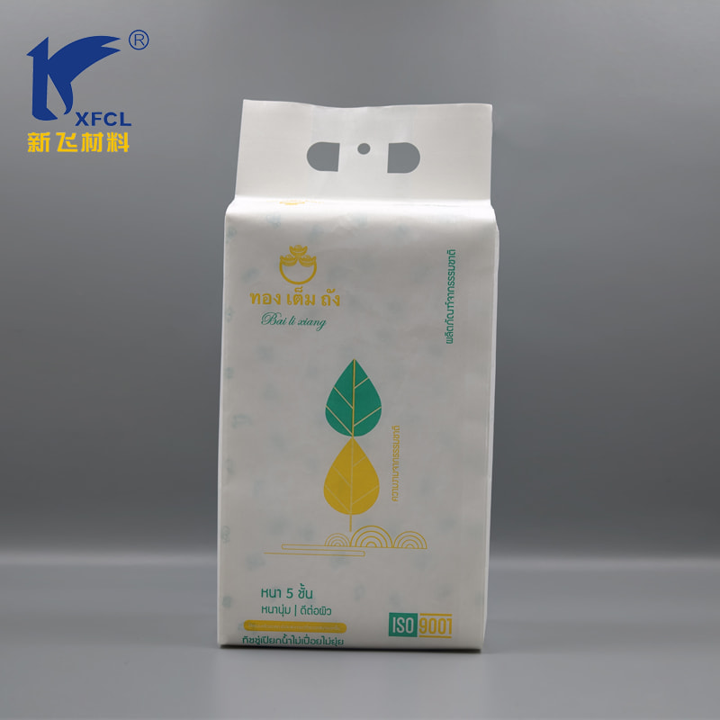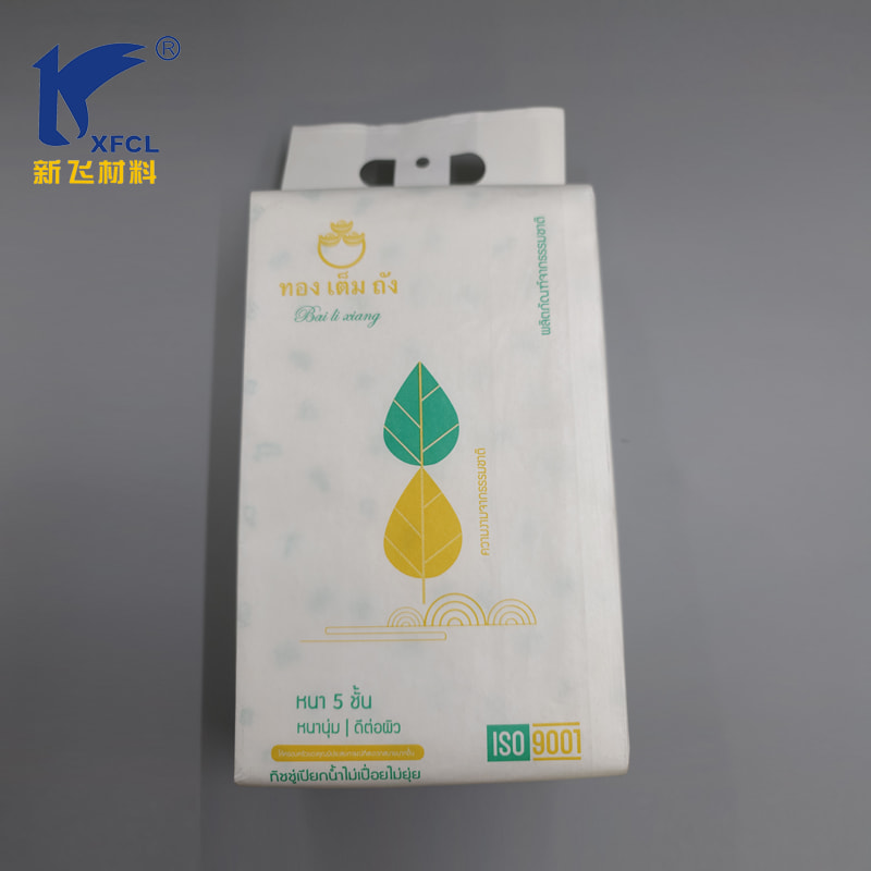This new no plastic biodegradable recycling paper package is widely used in hygiene industry now, like the sanitary napkin paper bag, tissue paper bag, diaper paper bag, menstrual pants paper bag and so on. Below is the sample in hanging tissue paper package.